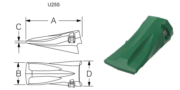 Avec sa clavette intégrée, la dent U25S Esco Ultralok est idéale pour les applications générales sur les chantiers de terrassement et de construction.
